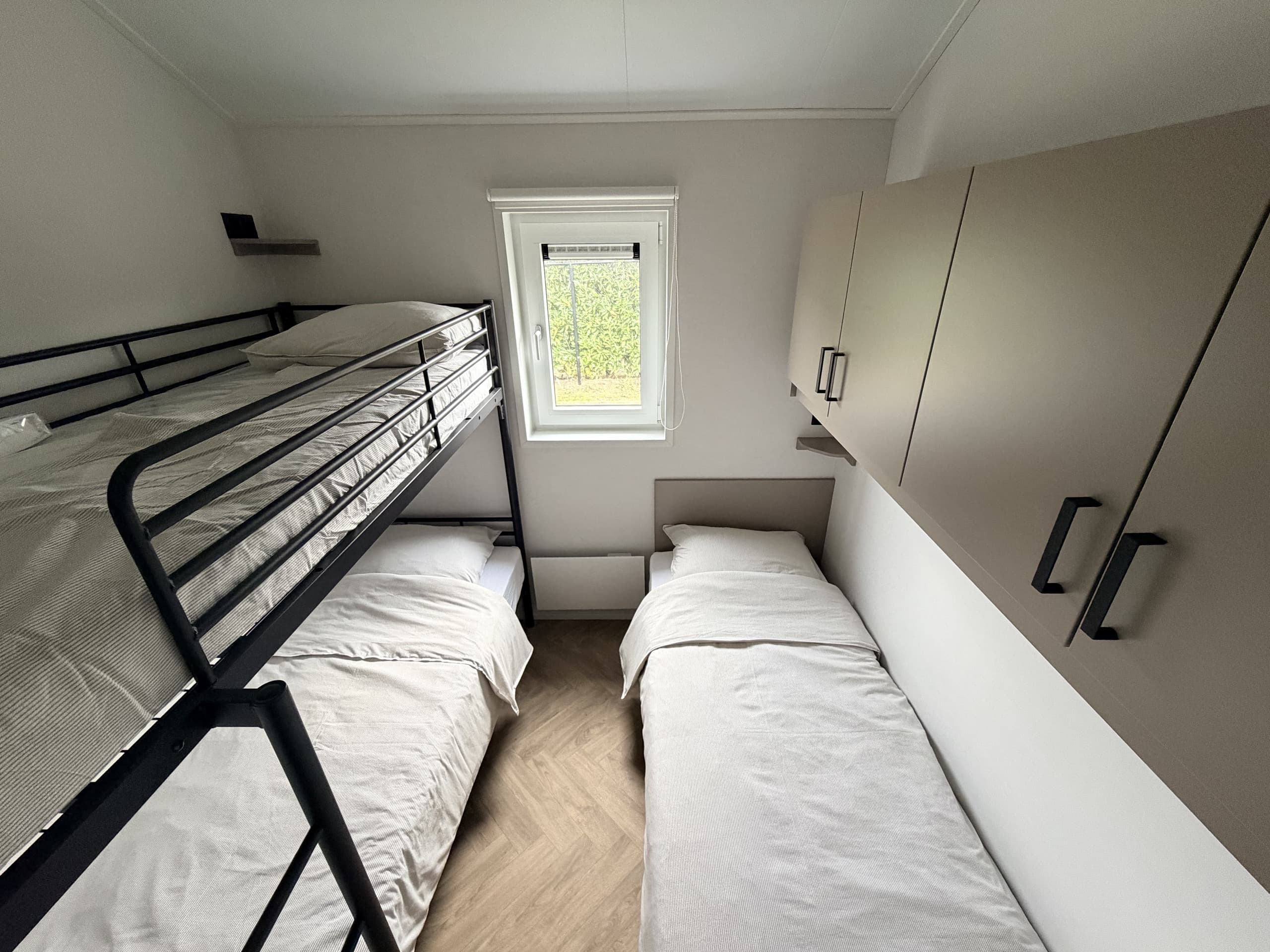 Voor een goede nachtrust beschikt slaapkamer één over een luxe boxspringbed met twee matrassen van 80×200. In slaapkamer twee vind je een boxspringbed en een praktisch stapelbed, perfect voor kinderen of extra gasten.